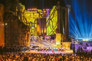 ومنذ عام 1957، أدى إدخال عرض لبناني بمشاركة فيروز والأخوين رحباني إلى ولادة «الليالي اللبنانية»، التي أصبحت تقليداً، وكشفت على مرّ السنوات عن مواهب لبنانية كبيرة. وتعاقب منذ ذلك الحين على المهرجان فنانين دوليين ومحليين، في حوارٍ جمع بين الموسيقى الكلاسيكية والمسرح والرقص والأوبرا والجاز.